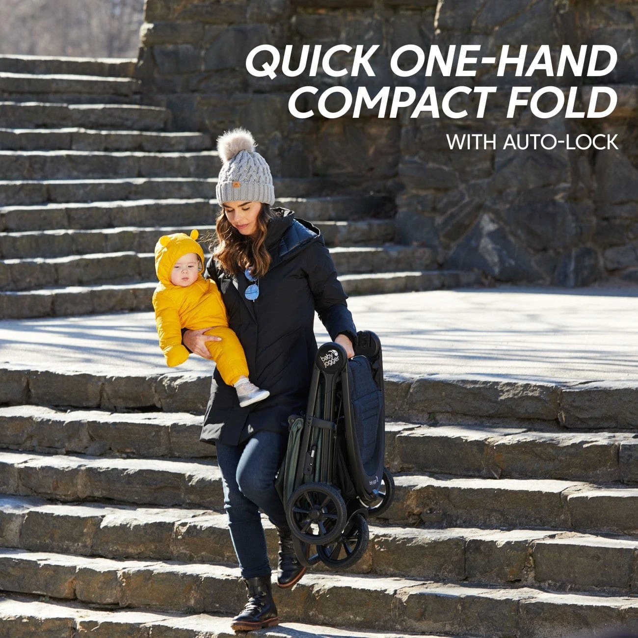Baby Jogger’s signature one-hand fold with auto-lock ensures easy transportation and storage