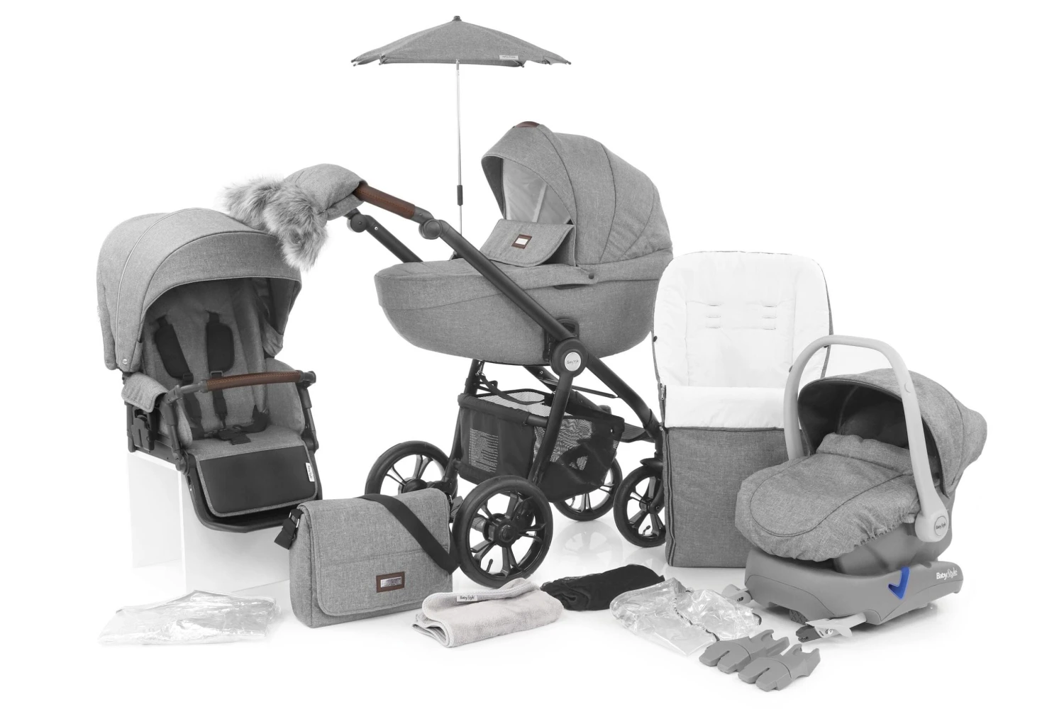 The pram body is grand, deep and spacious providing excellent room for the baby to develop and stretch. The seat unit is detachable facing either the parent or forwards and has three recline positions. There is also a matching car seat which can be used with adaptors to form a perfect travel system.