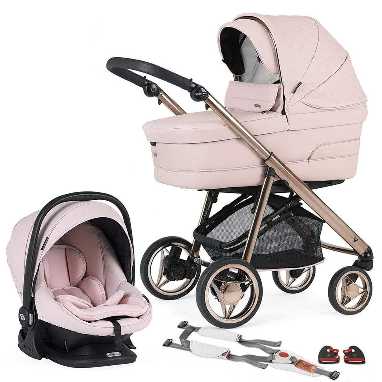 Suitable from birth, all three pieces of this Bebecar V-Pack fit quickly and easily onto the chassis without adaptors, making all your journeys as smooth as possible. Includes Chassis, reversible Seat Unit with hood, large W-Bob Carrycot with LA3 Kit, Easymaxi lie flat car seat and Raincover.
