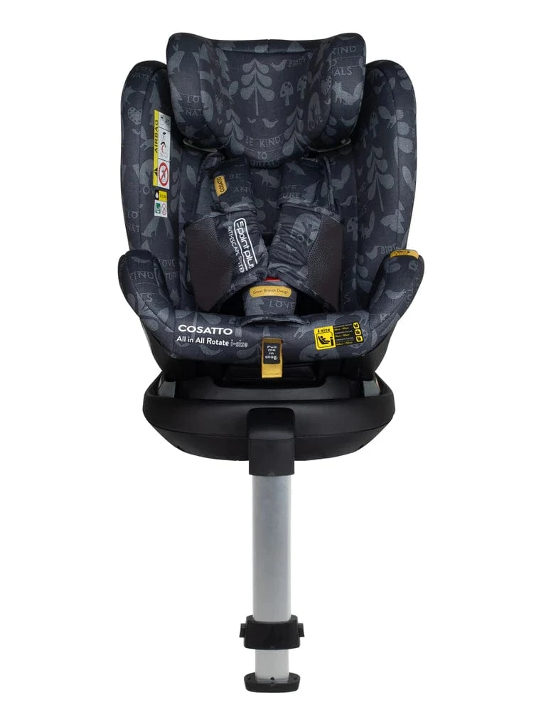 - Extra Security. With exclusive 5 point plus Anti-Escape system, an adjustable pop-out side impact protection system and a plush impact-absorbing foam inlay for added security, All in All i-Rotate brings added in-car safety.