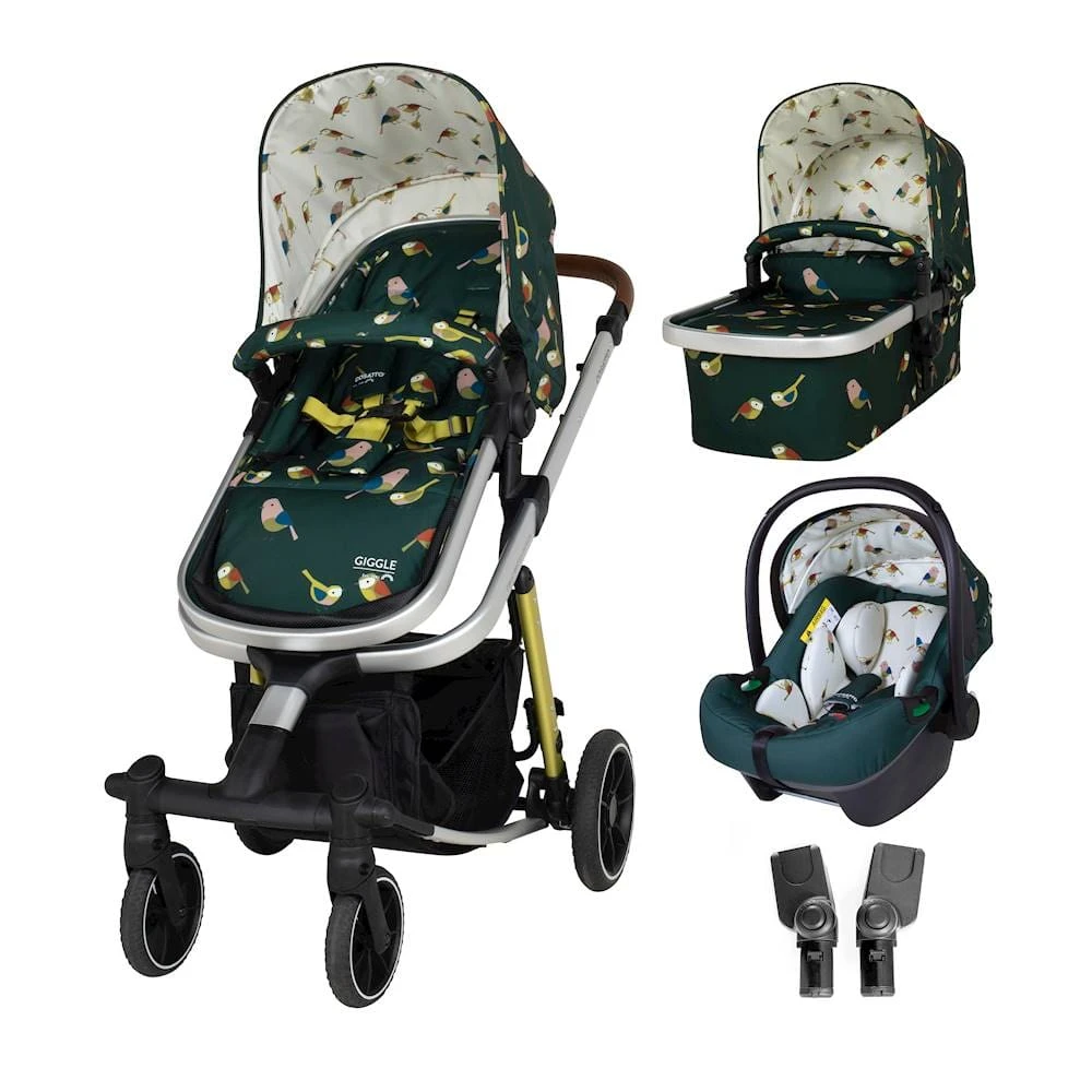 1. Â Giggle 3 in 1 Trail i-Size is the essential travel system with extras. This one box bundle includes a 4-wheel chassis, carrycot, seat unit, raincover and Tote i-Size 0+ car seat with adaptors.