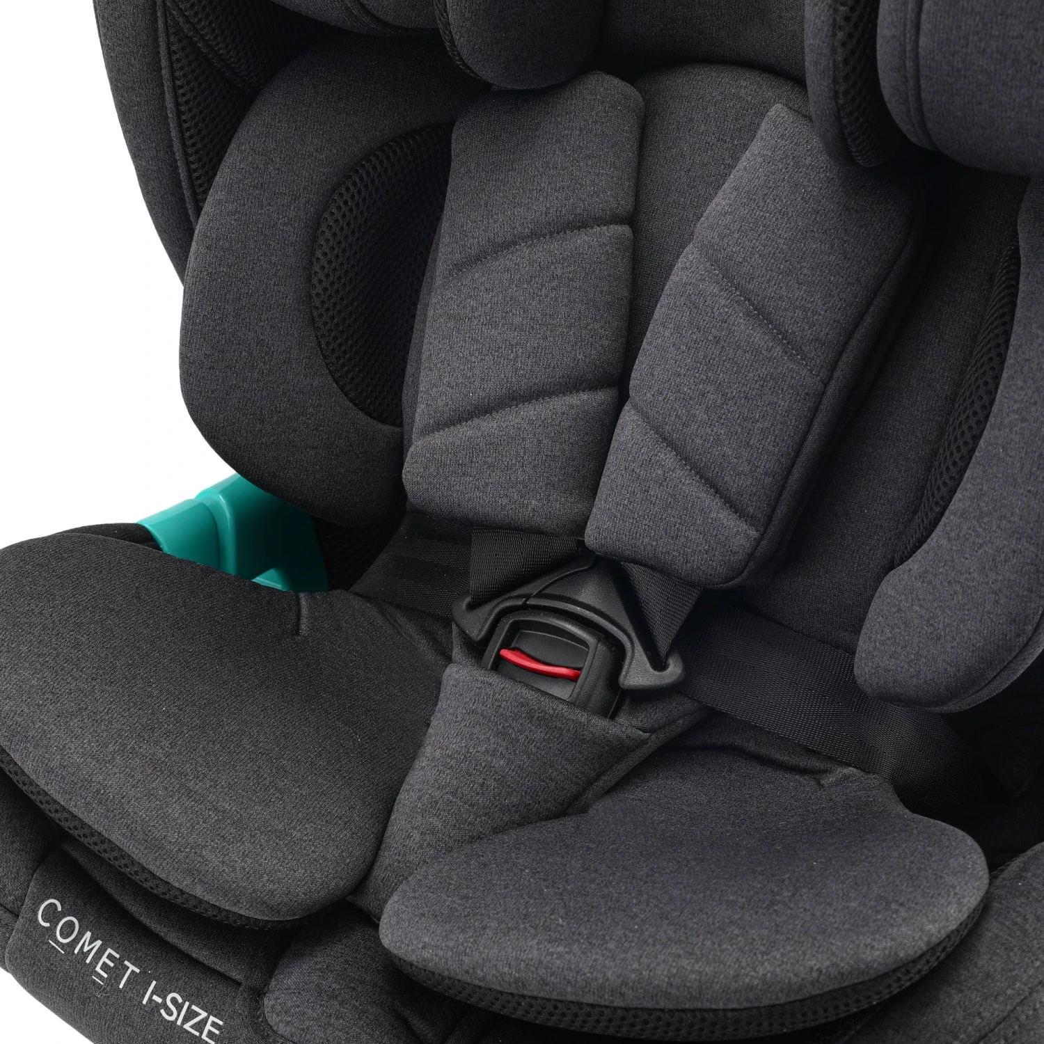 Stylish and Comfortable: The Comet i-Size Car Seat boasts a soft touch outer fabric, adding a touch of elegance to any car interior. The luxurious, soft-touch inner cushions with extra deep padding, as well as quilted chest and buckle pads, enhance your child’s comfort during the journey. All covers are fully removable and washable at 30°C, allowing for easy maintenance.
