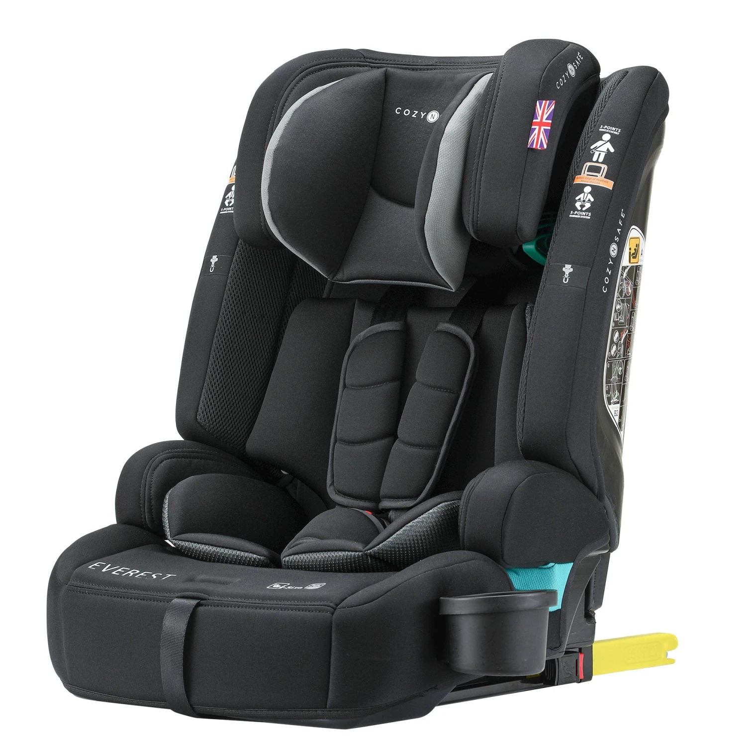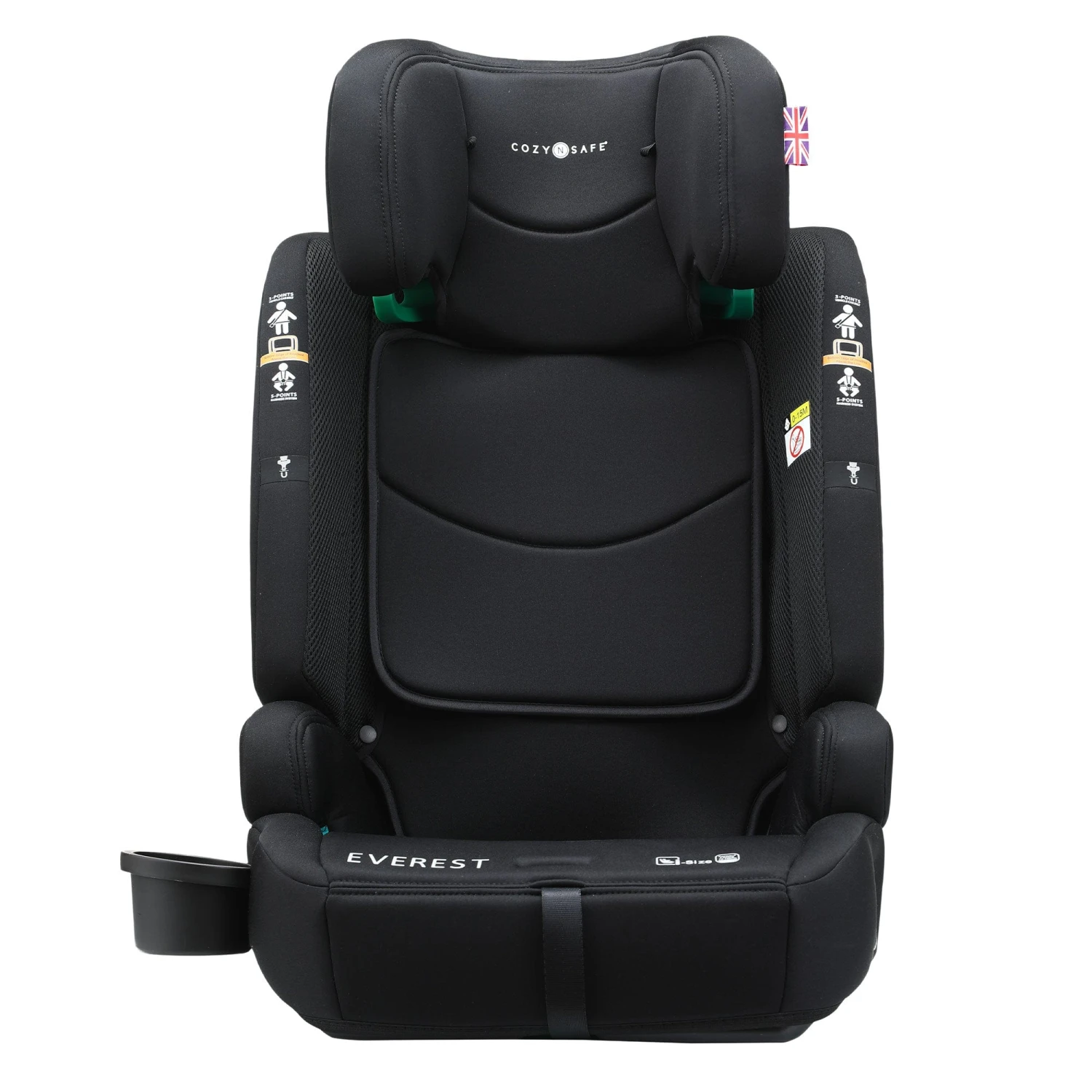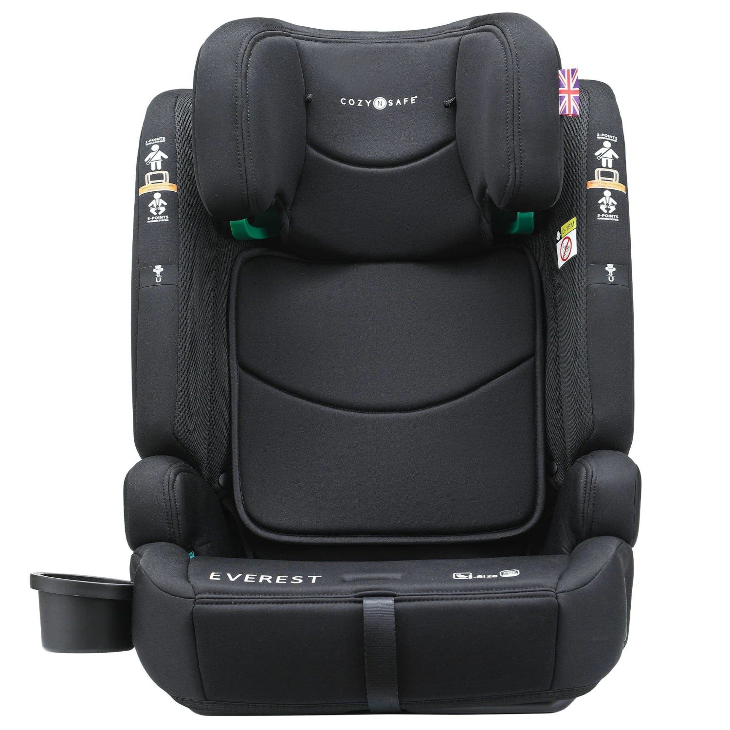 The Cozy N Safe Everest i-Size car seat is as strong and sturdy as the mountain it’s named after. The car seat is suitable for children from 76cm to 150cm tall (approx. 15months to 12 years old). The Everest i-Size seat is fitted into most vehicles using the ISOFix and Top Tether system when using the 5 point harness system. Then when your not so little one outgrows the harness simply hide it and the car seat transforms into a high back booster seat that can then be installed using the optional ISOFix and/or the vehicles’ 3 point seat belt.