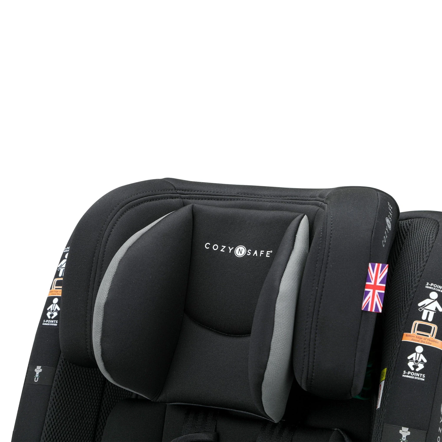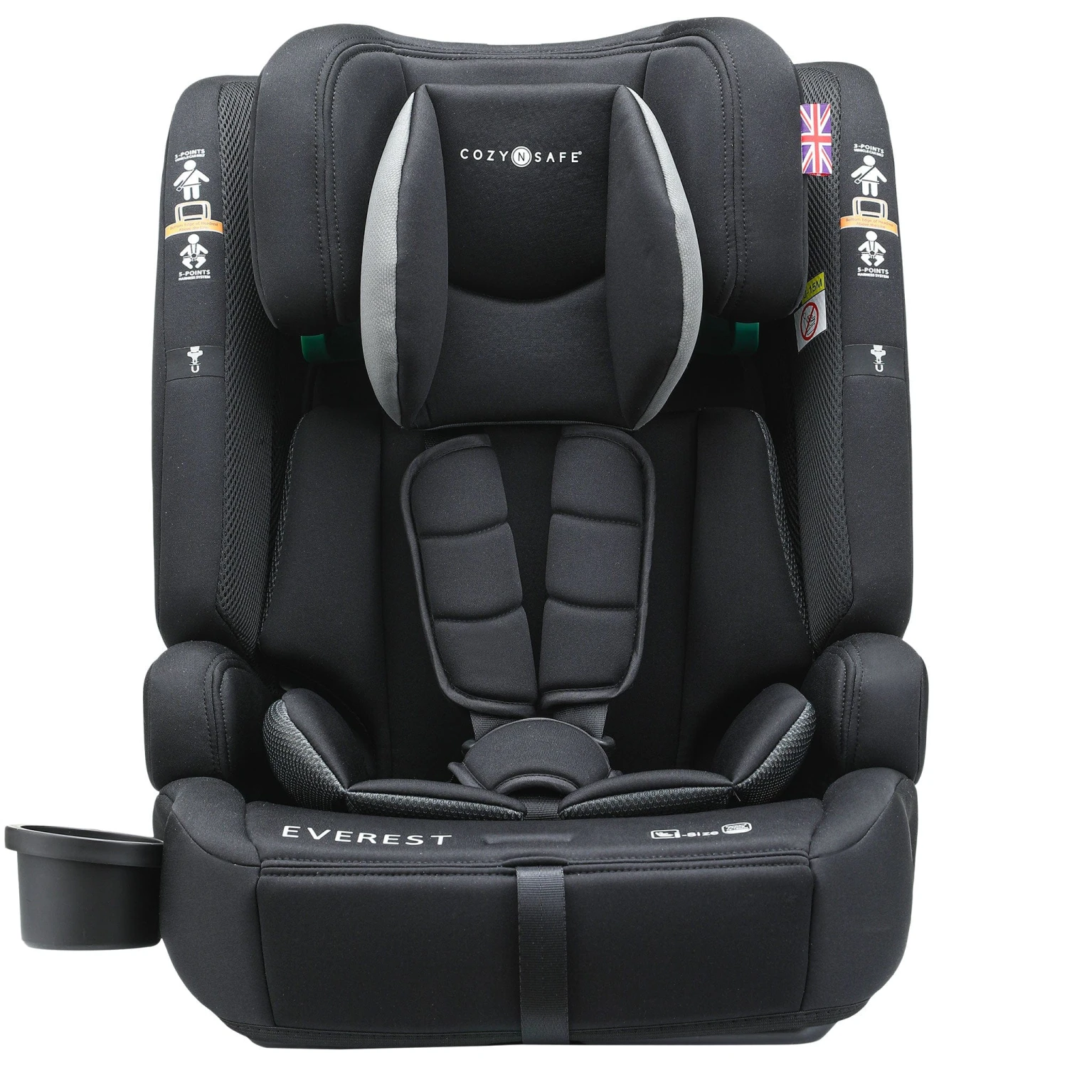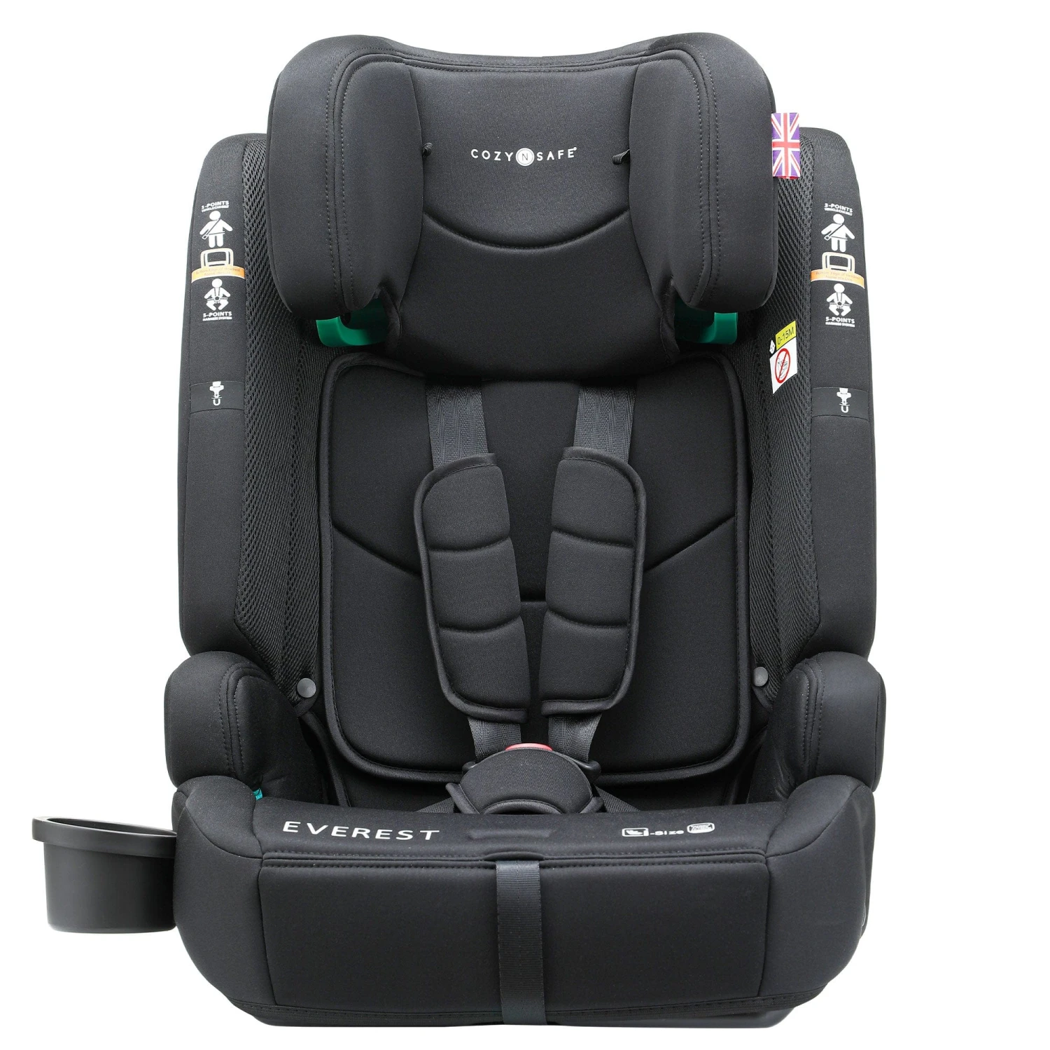 The headrest is fully adjustable with 11 headrest positions and has a handy reminder when to stop using the 5 point safety harness. Weighing in at only 7.49kg the Everest is perfect for swapping between cars. The car seat is tested to the latest i-Size regulations giving you piece of mind the seat is as safe as it is comfortable. Get ready for an adventure today with the Cozy N Safe Everest i-Size car seat.