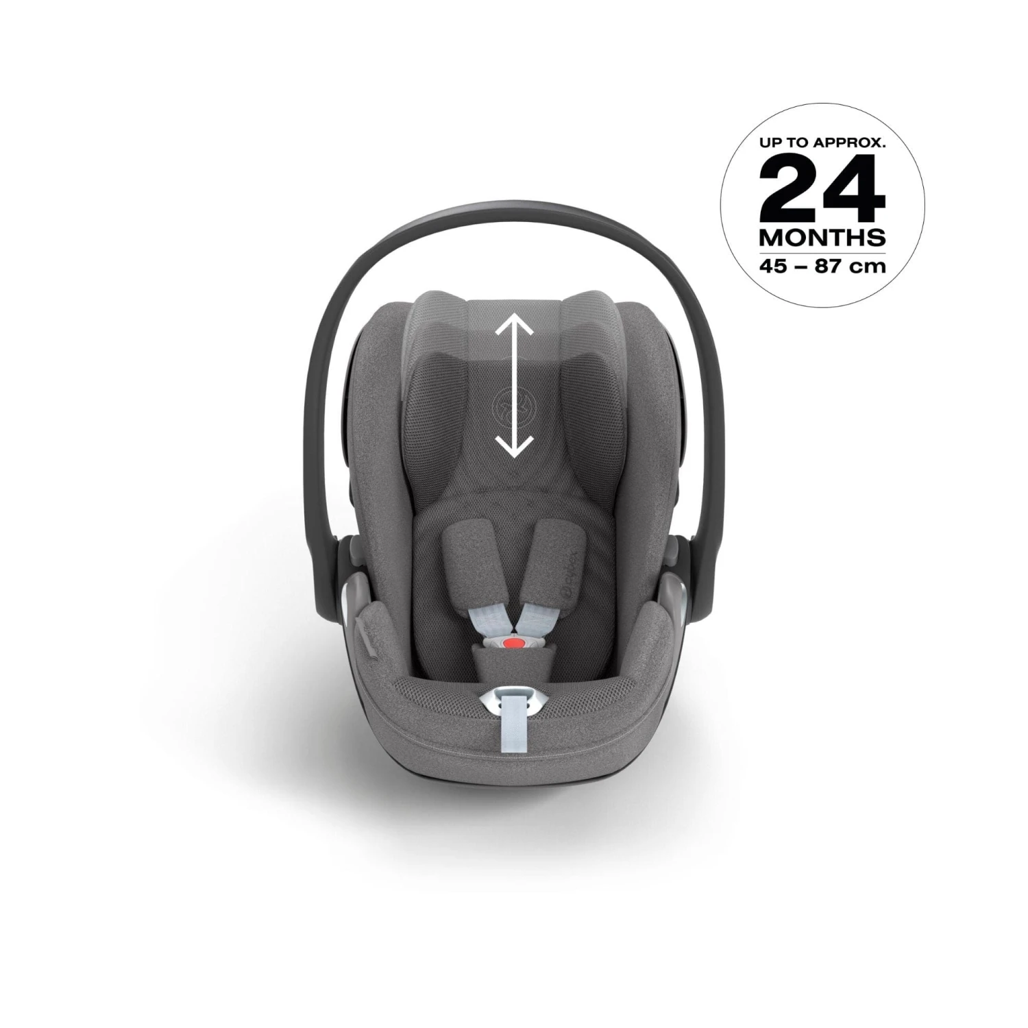 The Cloud T i-Size infant car seat lasts from birth to 87cm approx. 24 months, it is the ultimate all-rounder for comfortable and flexible journeys with your child, both inside and outside the car. It offers an in-car recline position when used with the ISOFIX Base T (sold separately), providing a comfortable and safe ride. When used as part of a travel system the Cloud T i-Size gives you full flexibility by offering an outstanding, ergonomic lie-flat position, meaning your baby has unrestricted breathing and is at a safer reclined angle whilst their lungs are still developing.