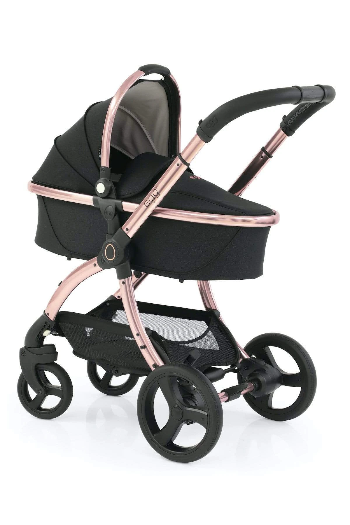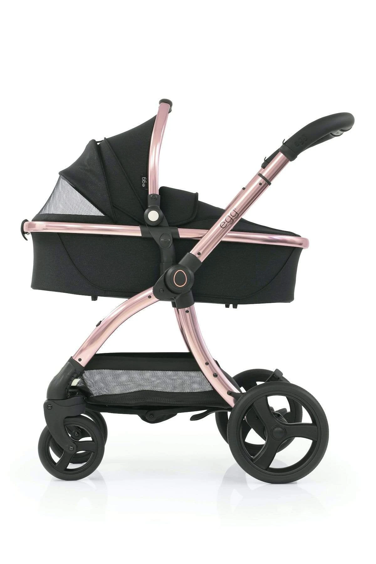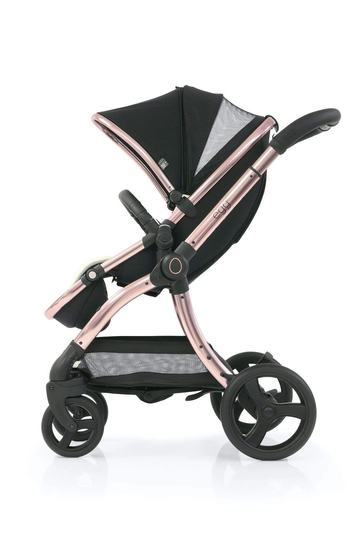 A proud chassis, the egg2® 5-position handle has an adjustment range of 99 x 111cm, and with a redesigned central hub sporting a proud egg® emblem. Featuring a ‘one-hand fold’, the chassis is compact when folded and freestands, with the handle clear from the ground.