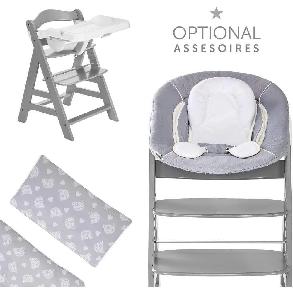 Our recommendation: In combination with the Alpha Bouncer, you can use the ALPHA+ directly from birth. In addition, you can combine the highchair with various highchair pads, as well as with the Alpha Wooden Tray or the adjustable Alpha Tray.