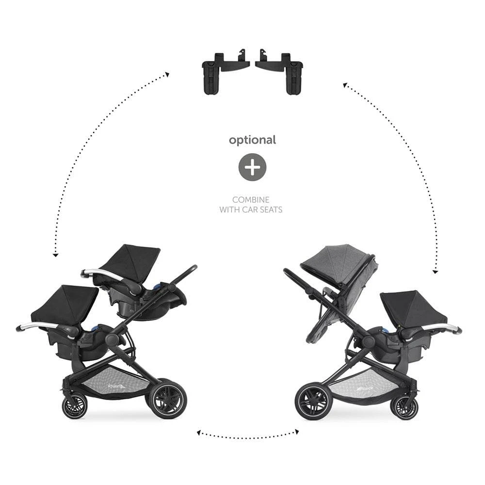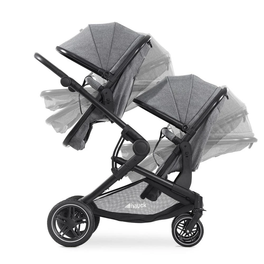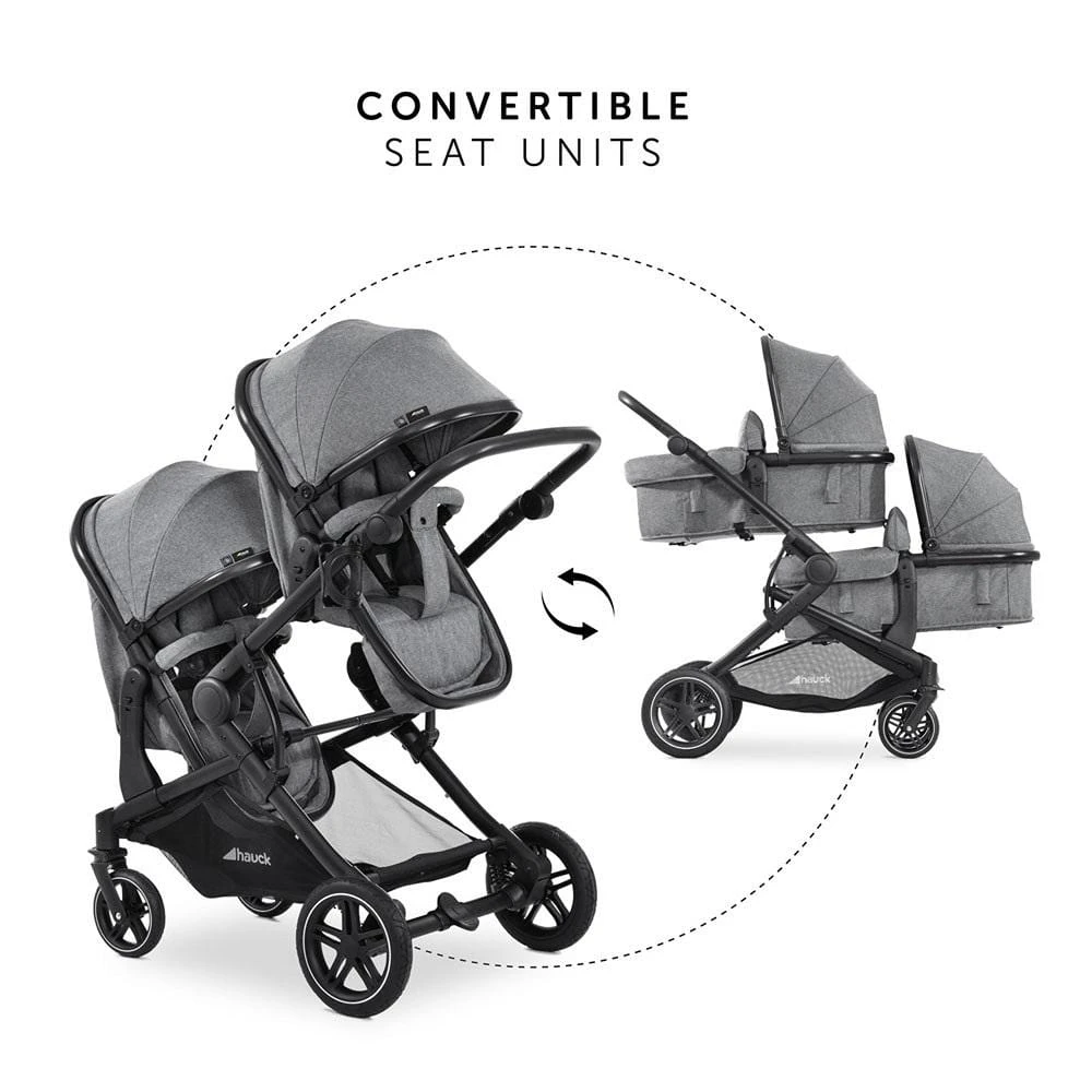 The Atlantic Twin can be used in many combinations including seat unit and carrycot, and two seat units set in opposite directions. You can also combine the Hauck Atlantic frame with two infant carriers via special car seat adaptors (sold separately). That allows you to create a super versatile travel system.