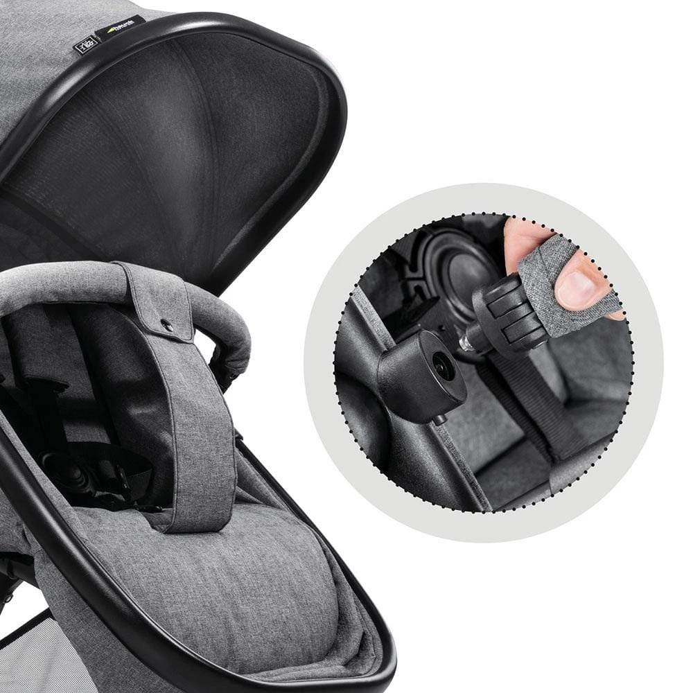 The Atlantic Twin comes with many practical features including adjustable push handle, expandable UPF 50+ canopies and reclining seats to comfortable lie flat sleeping position for sleeping. Both seat units have been equipped with 5-point harnesses and detachable soft lined protection bars. Carrycot aprons can be used as a nice foot covers in the seat unit mode to provide nice and snug feel during cold days. There is also a cup holder included, which enables parent to take away a coffee.