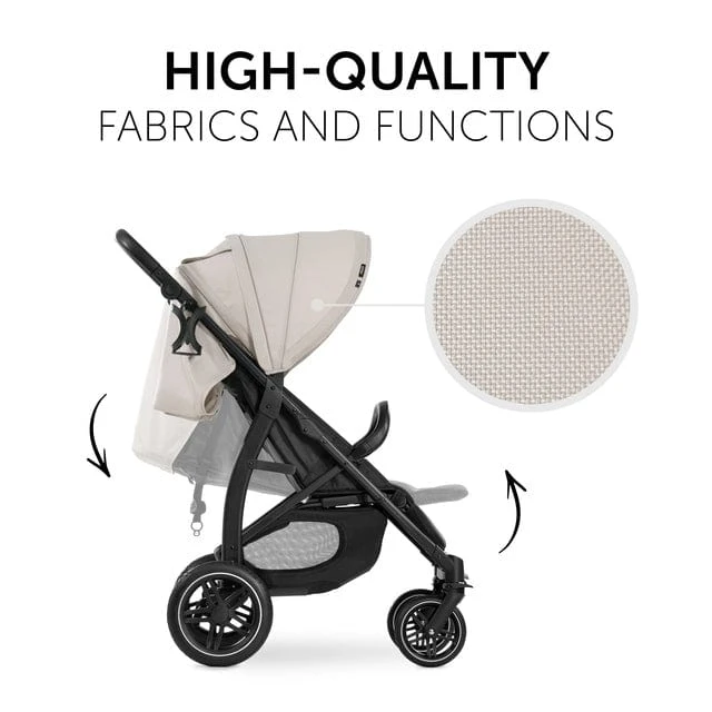 The pushchair’s seat is made of high-quality fabrics. Also, the backrest can be continuously inclined up to a lying position, making your little explorer feel comfy during any time of the day.