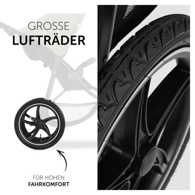 - The extra-large air wheels and suspension promise a bump-free ride. Even small curves have no chance against the lockable front wheel.