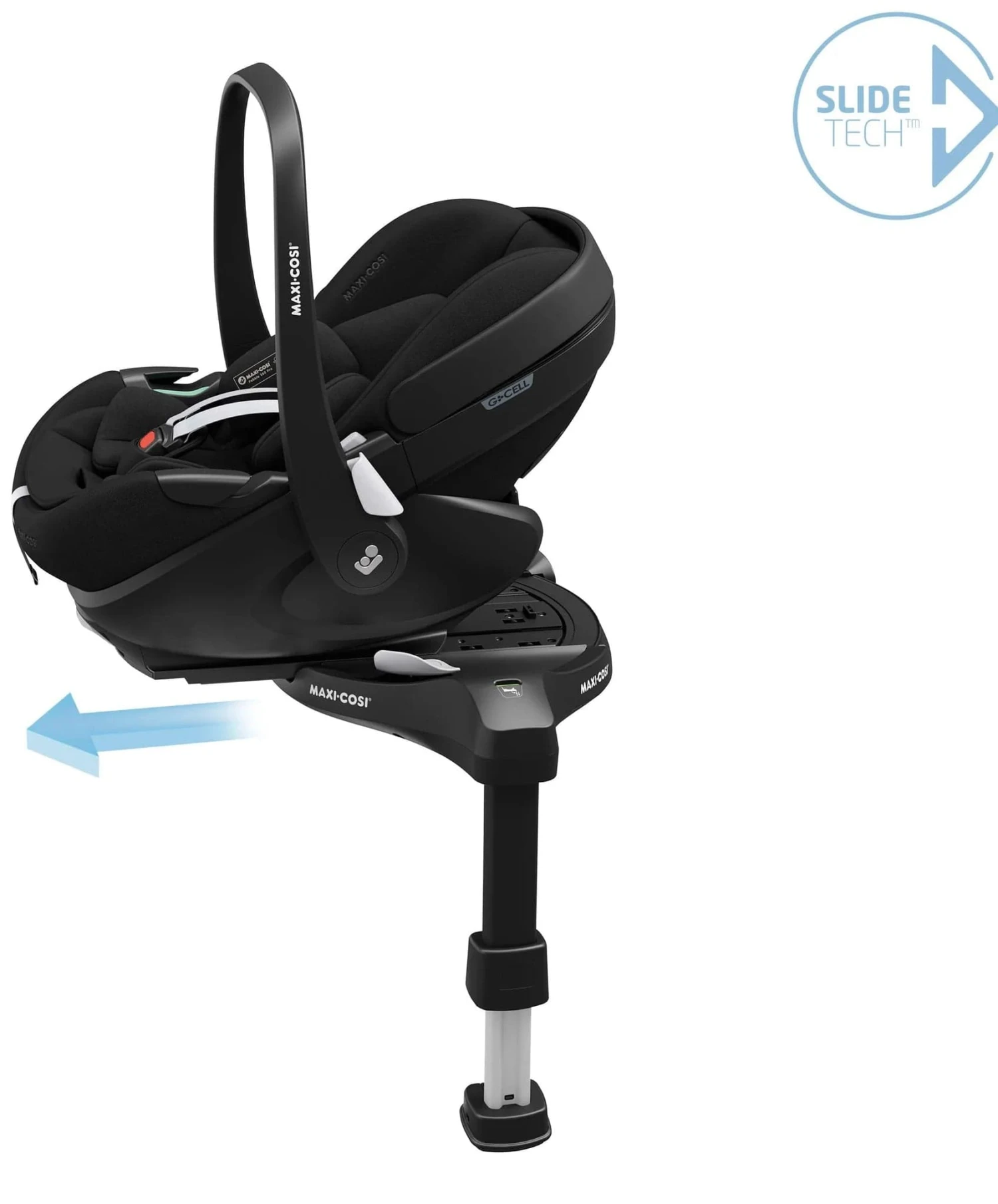 Maxi-Cosi Pebble 360 Pro is part of the 360 Pro Family range, featuring one-hand rotation and SlideTech™ – our revolutionary sliding car seat technology that makes every day easier. No backache, head bangs or struggles; simply lock, slide, spin and go! The Pebble 360 Pro delivers maximum sleep comfort for your baby, from birth to 15 months. The seat features three recline positions (including a superior full lie-flat position) which can be used in the car and attached on a pushchair. The lie-flat position offers a more natural sleeping position for babies, as it helps keep their airways open and allows them to breathe more easily. When used with the rotating FamilyFix 360 Pro slide out base (sold separately), you can effortlessly rotate and slide your child toward you. The Easy-in harness adds even more convenience, allowing you to fasten your baby in with minimum fuss. On the road, Maxi-Cosi’s integrated G-CELL Side Impact Protection provides superior safety.