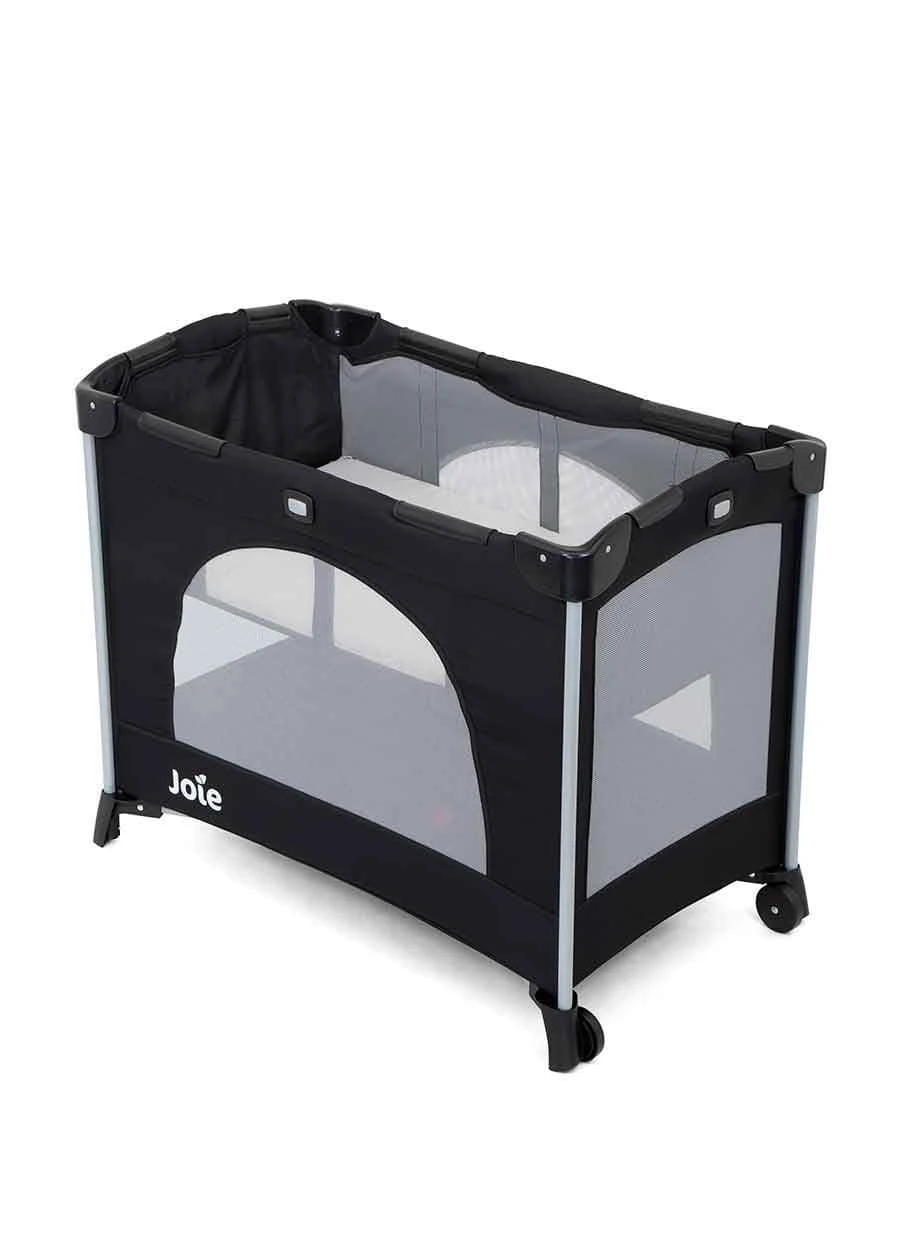Packed with essentials including a raised bassinet with a handy clip attachment, two wheels for portability, a handy carry bag and more