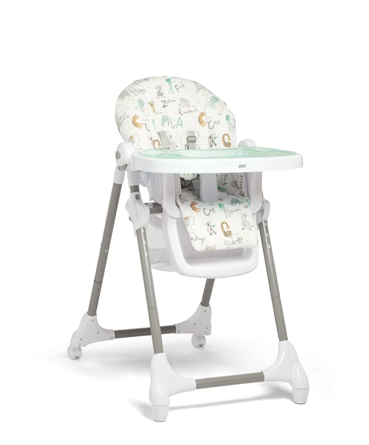 Suitable from six months, the Snax highchair is also ideal for saving space. Not only does it include a handy storage basket for all your dinner time essentials, but the chair can be folded compactly with the tray still attached. The added castors make it easier to move, and the five point harness keeps your little one safe at all times.