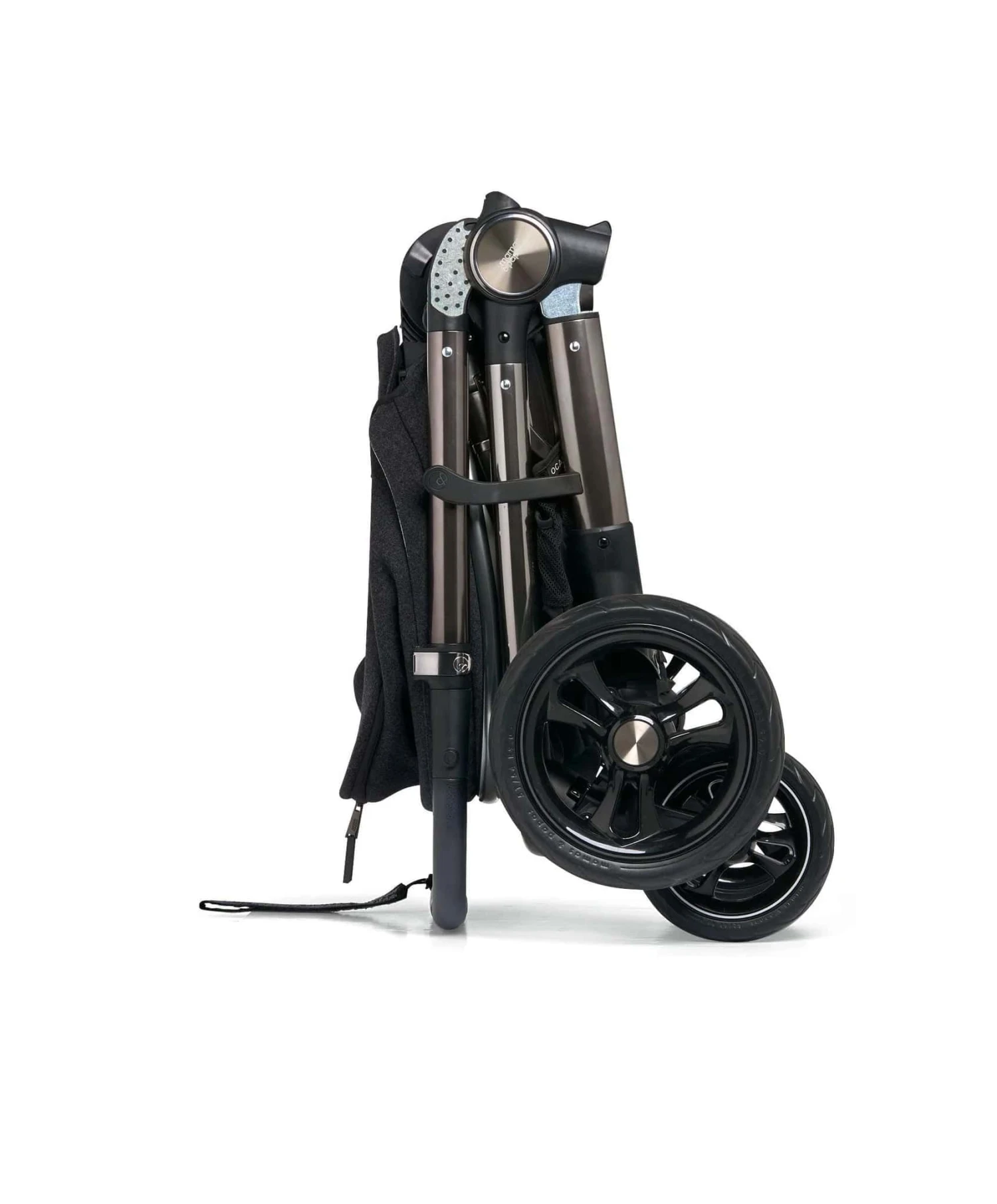 We’ve given our heritage aesthetic a contemporary update, with classic herringbone weaves, a modern slate palette and a sleek gunmetal chassis. With 4-wheel suspension and our largest puncture-proof tyres, you can ensure a safe, smooth, steady ride on any terrain. It’s got a large, padded seat, comfy cushioned chest pads and head-hugging pillow, so your little one will always enjoy a comfy ride – perfect for snoozes on-the-go. And when it comes to packing your Ocarro away in the car or at home, you can quickly fold it using one hand, then store it neatly away thanks to its compact design.