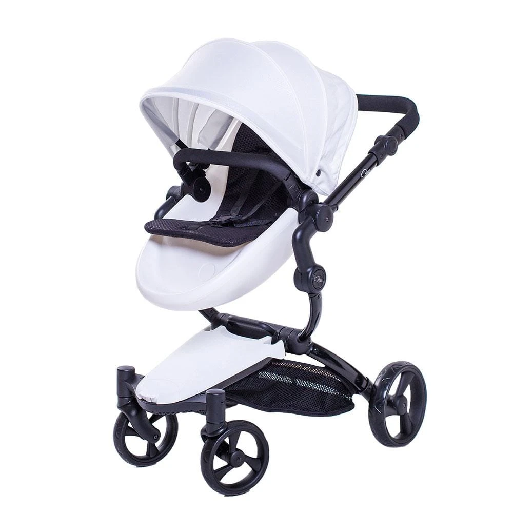 The Jemima dolls pram is a miniature version of Mum’s pram! With a two-way facing seat unit, the Jemima mimics the features of a full size pram. The smooth black chassis looks stunning against the wipe-clean white fabrics.