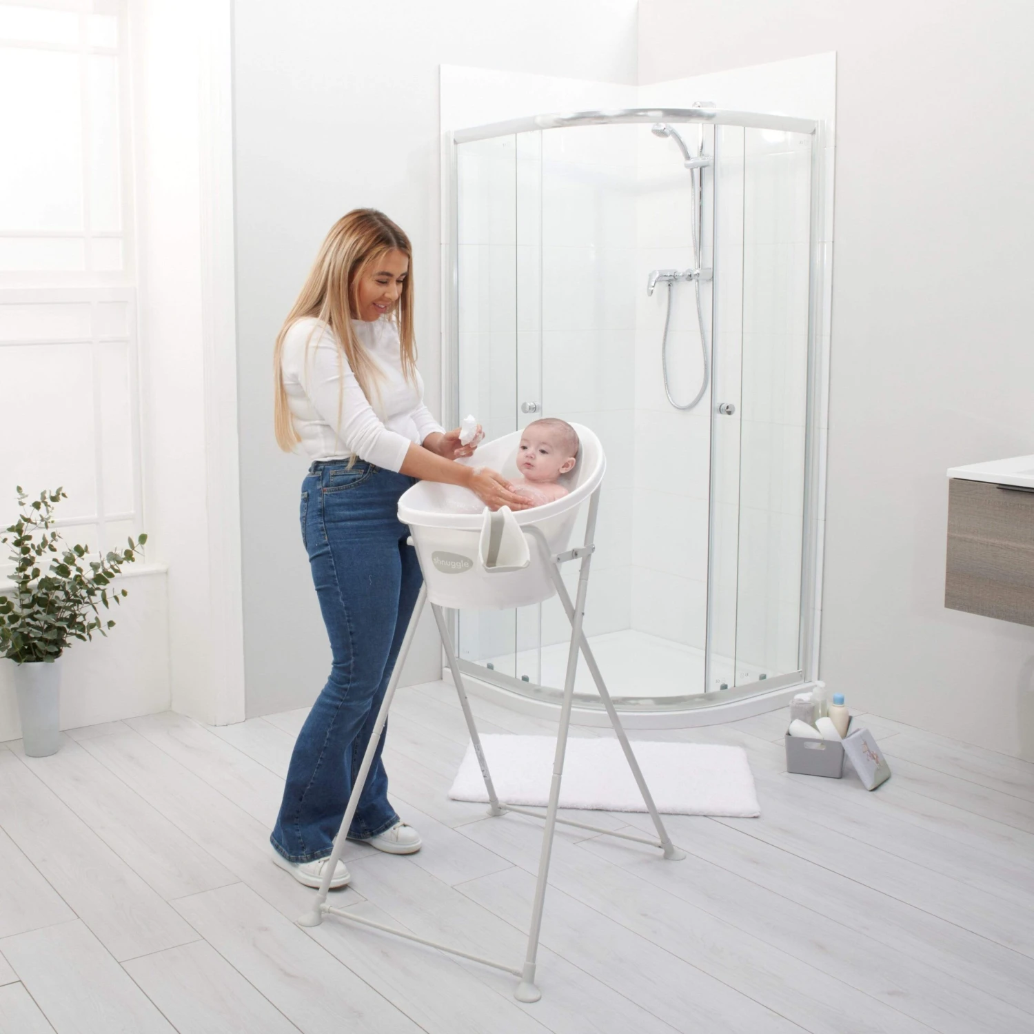 This second generation design complements the Shnuggle Bath perfectly and is now available in light grey. The Folding Bath Stand raises the height of the Shnuggle Baby Bath to approximately 76cm from the floor, placing baby at waist height. Particularly of benefit to Mums and Dads with back trouble or mums who have had a cesarean section and would otherwise find it difficult to bath baby in the first few weeks. The latest design now features an easier folding mechanism and takes less time to assemble than the previous design as well as providing all the benefits of the original stand.