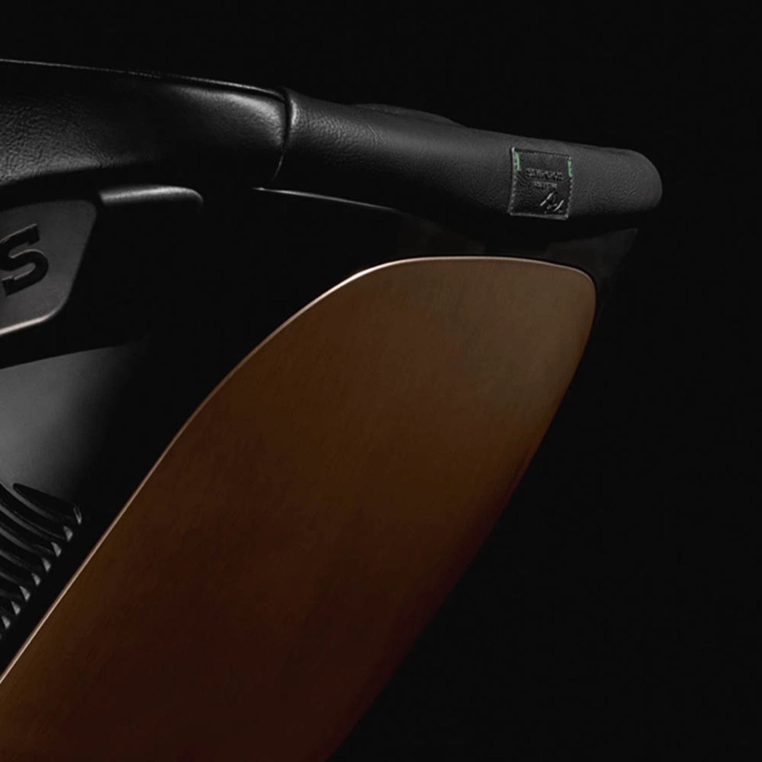 Combines trailblazing tailoring with high calibre technology. Tactile touchpoints of sleek, deep leatherette and modern, dynamic green flawlessly enhance brushed titanium details. Debossed textures elevate a unique printed emblem created exclusively for the collection.