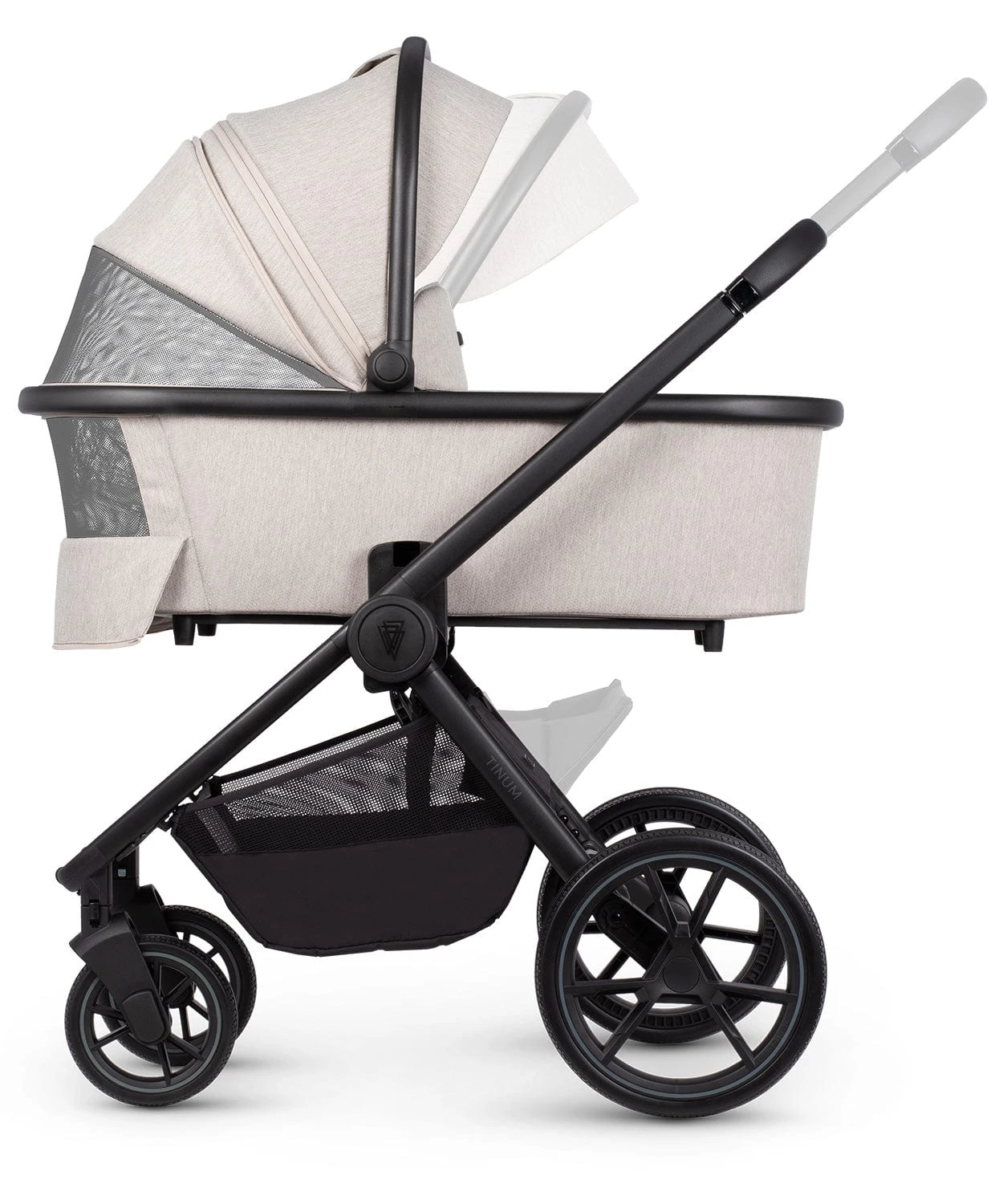 Although Tinum Edge is more understated, its details still emphasise the stroller’s overall line. Subtle zips and a smooth handle perfectly complement the design. The adjustable harness in the pushchair, panoramic ventilation in the carrycot, UV 50-protected fabric, and solid puncture-proof wheels make everyday use easier. You will discover the remaining features on your own!