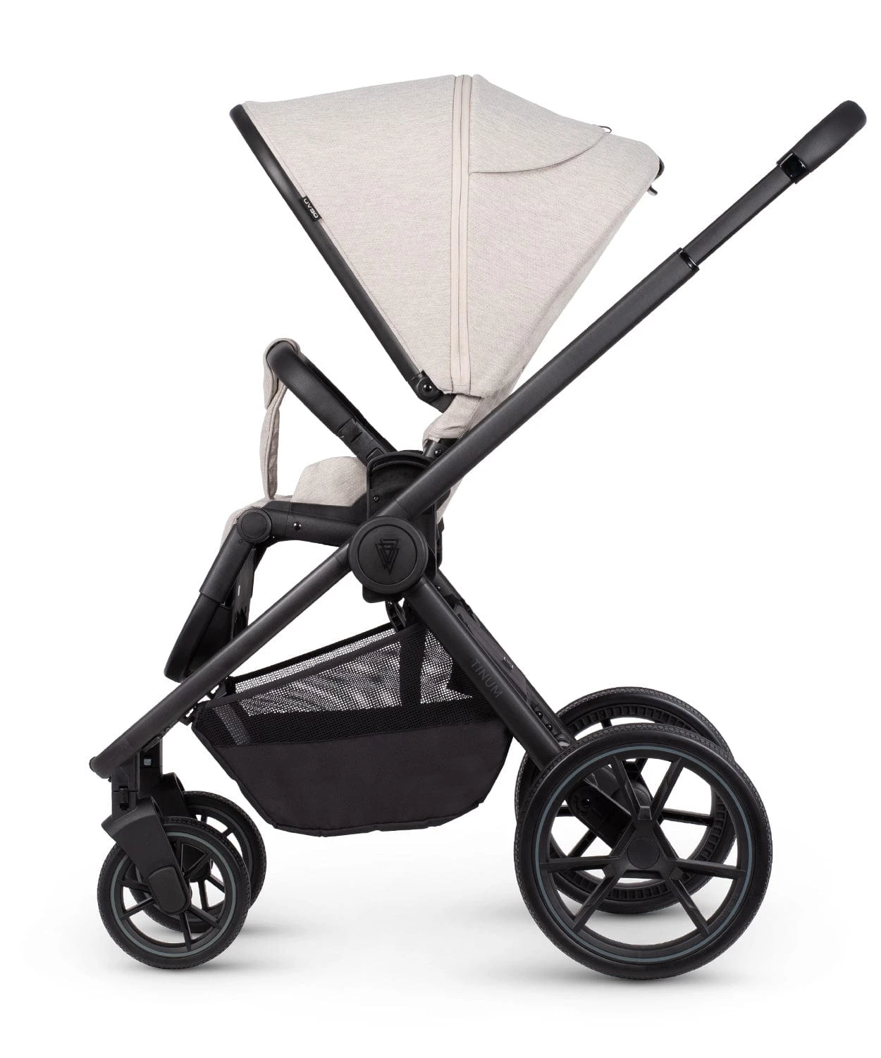 Although Tinum Edge is more understated, its details still emphasise the stroller’s overall line. Subtle zips and a smooth handle perfectly complement the design. The adjustable harness in the pushchair, panoramic ventilation in the carrycot, UV 50-protected fabric, and solid puncture-proof wheels make everyday use easier. You will discover the remaining features on your own!
