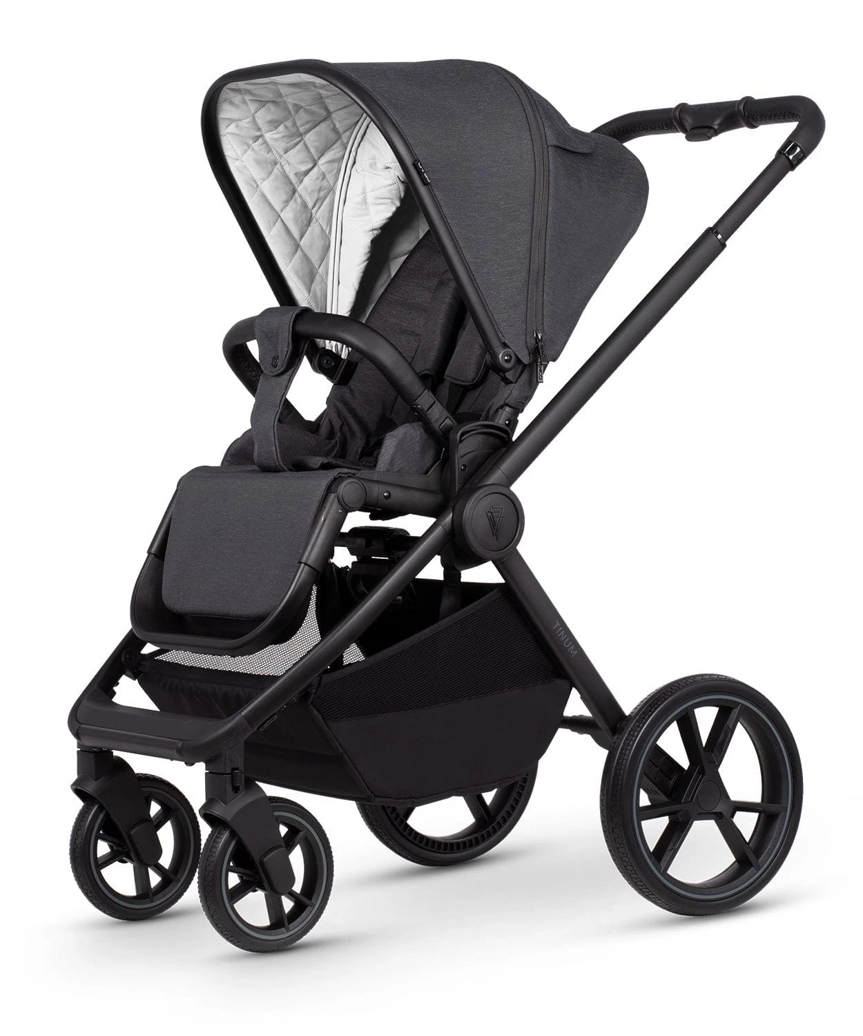 Although Tinum Edge is more understated, its details still emphasise the stroller’s overall line. Subtle zips and a smooth handle perfectly complement the design. The adjustable harness in the pushchair, panoramic ventilation in the carrycot, UV 50-protected fabric, and solid puncture-proof wheels make everyday use easier. You will discover the remaining features on your own!